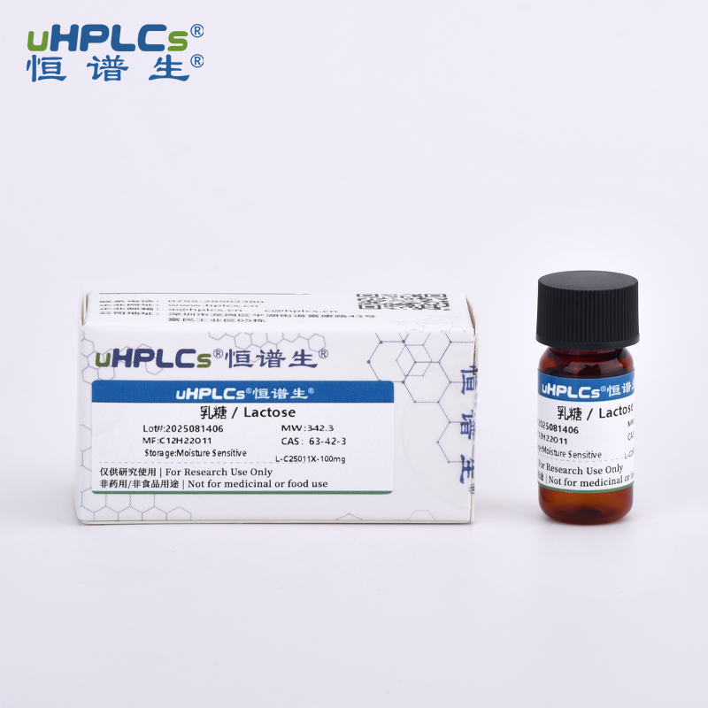 乳糖(CAS 63-42-3)作为天然存在的二糖,由一分子葡萄糖与一分子半乳糖通过 β-1.4 糖苷键连接构成,是哺乳动物乳汁中的关键碳水化合物成分。作为认证标准物质(CRM),该乳糖标准品专为分析测试、仪器校准及质量控制场景设计,凭借可靠的溯源性、高纯度与稳定的性能,广泛适用于实验室检测、科研机构研究及工业质量保证等领域。